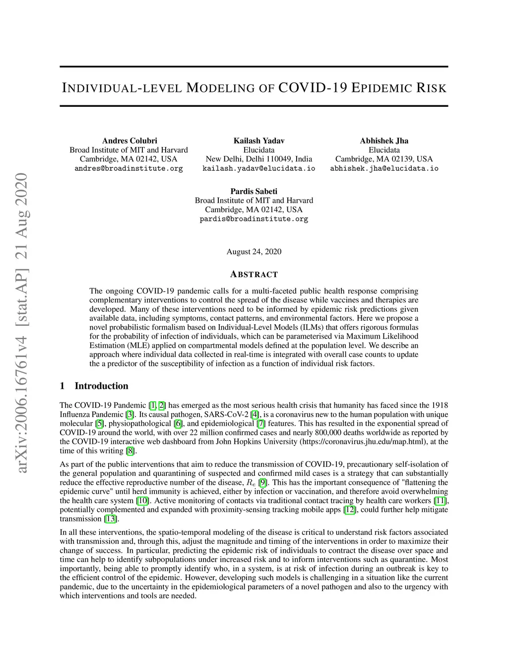 The ongoing COVID-19 pandemic calls for a multi-faceted public health response comprising complementary interventions to control the spread of the disease while vaccines and therapies are developed. Many of these interventions need to be informed by epidemic risk predictions given available data, including symptoms, contact patterns, and environmental factors. Here we propose a novel probabilistic formalism based on Individual-Level Models (ILMs) that offers rigorous formulas for the probability of infection of individuals, which can be parameterised via Maximum Likelihood Estimation (MLE) applied on compartmental models defined at the population level. We describe an approach where individual data collected in real-time is integrated with overall case counts to update the a predictor of the susceptibility of infection as a function of individual risk factors.