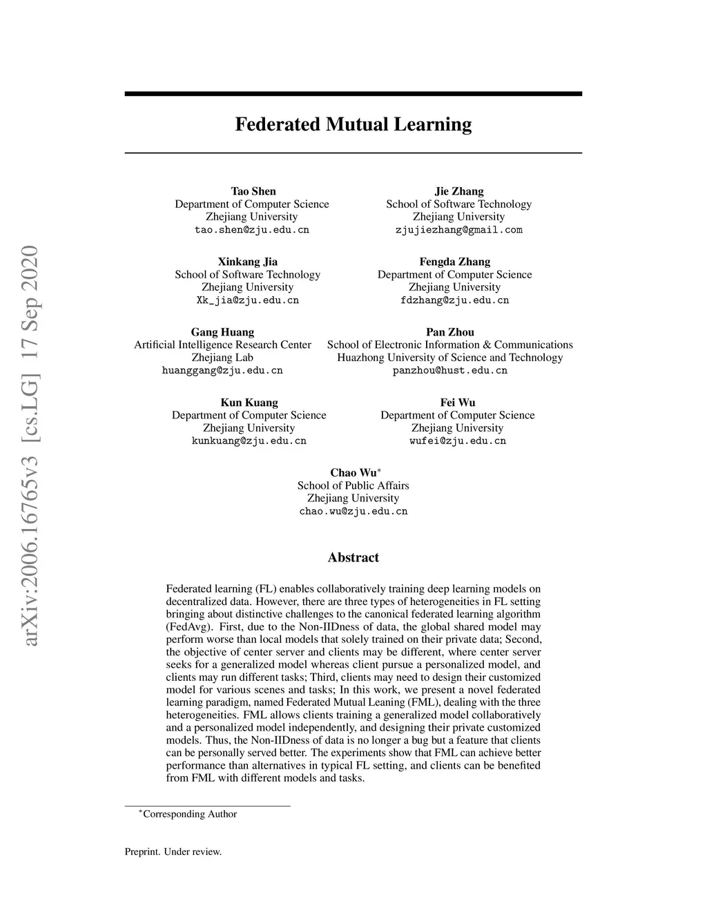 Federated Mutual Learning