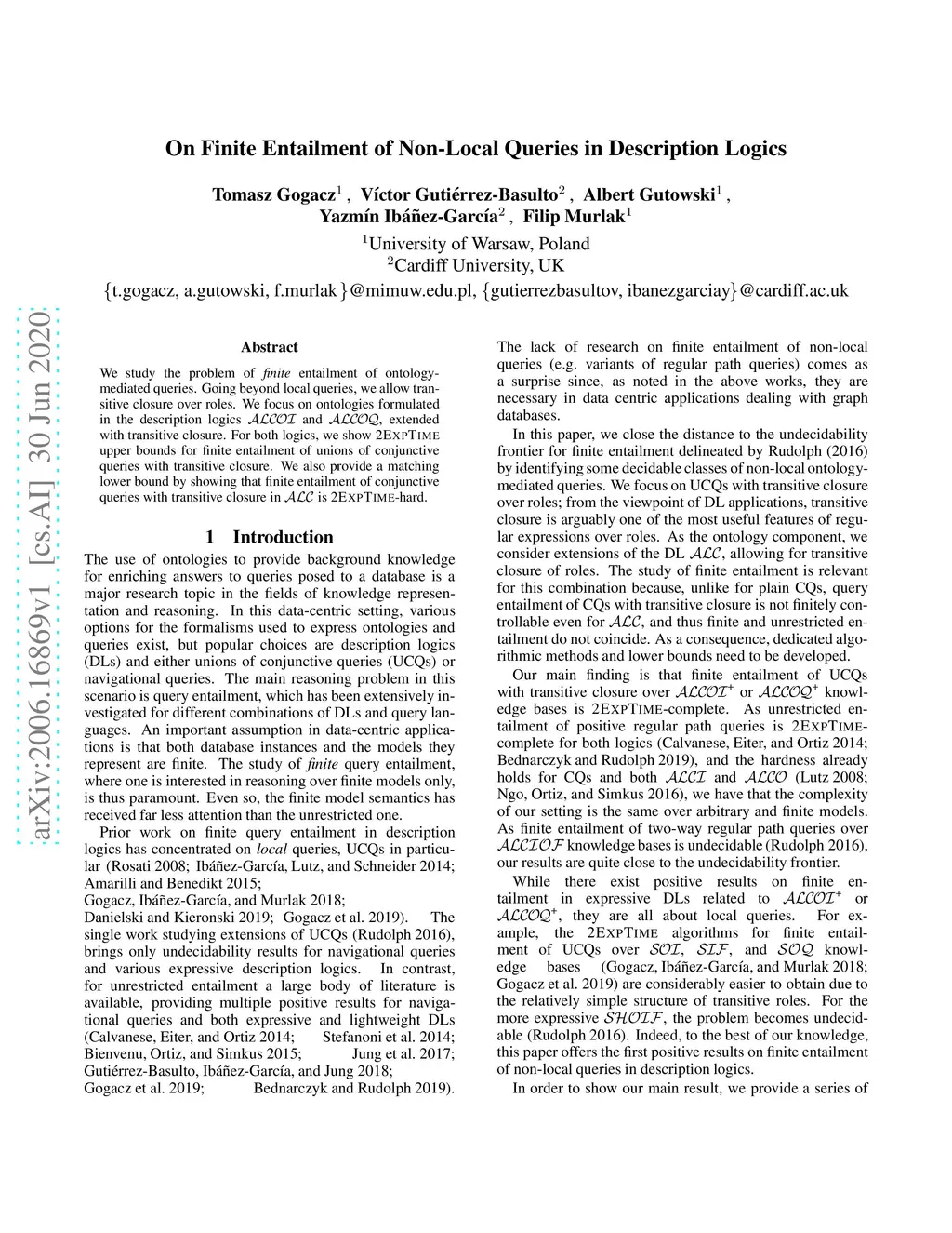 We study the problem of finite entailment of ontology-mediated queries. Going beyond local queries, we allow transitive closure over roles. We focus on ontologies formulated in the description logics ALCOI and ALCOQ, extended with transitive closure. For both logics, we show 2EXPTIME upper bounds for finite entailment of unions of conjunctive queries with transitive closure. We also provide a matching lower bound by showing that finite entailment of conjunctive queries with transitive closure in ALC is 2EXPTIME-hard.