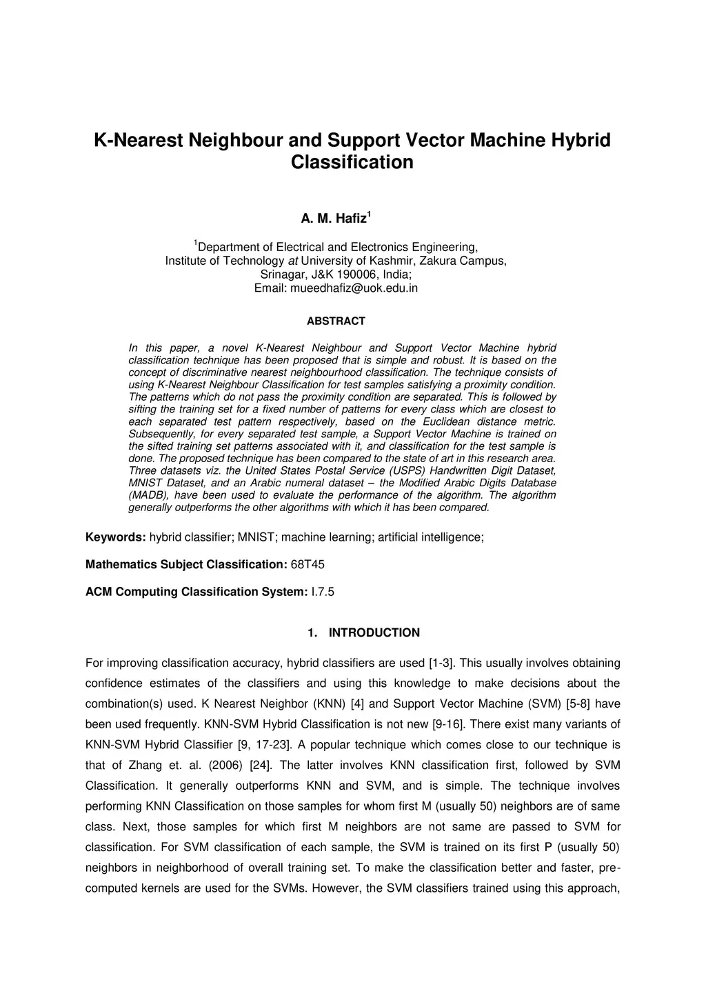 K-Nearest Neighbour and Support Vector Machine Hybrid Classification