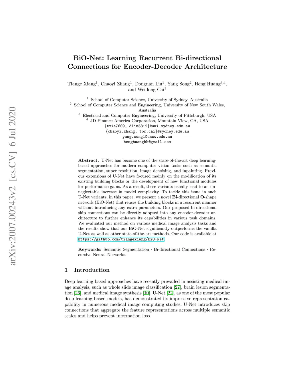 U-Net has become one of the state-of-the-art deep learning-based approaches for modern computer vision tasks such as semantic segmentation, super resolution, image denoising, and inpainting. Previous extensions of U-Net have focused mainly on the modification of its existing building blocks or the development of new functional modules for performance gains. As a result, these variants usually lead to an unneglectable increase in model complexity. To tackle this issue in such U-Net variants, in this paper, we present a novel Bi-directional O-shape network (BiO-Net) that reuses the building blocks in a recurrent manner without introducing any extra parameters. Our proposed bi-directional skip connections can be directly adopted into any encoder-decoder architecture to further enhance its capabilities in various task domains. We evaluated our method on various medical image analysis tasks and the results show that our BiO-Net significantly outperforms the vanilla U-Net as well as other state-of-the-art methods. Our code is available at https://github.com/tiangexiang/BiO-Net.