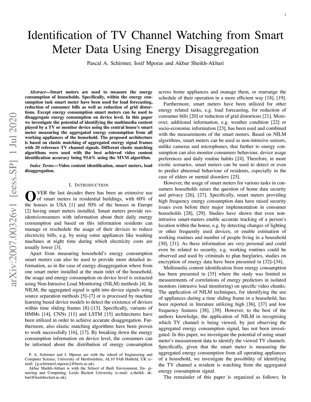 Identification of TV Channel Watching from Smart Meter Data Using Energy