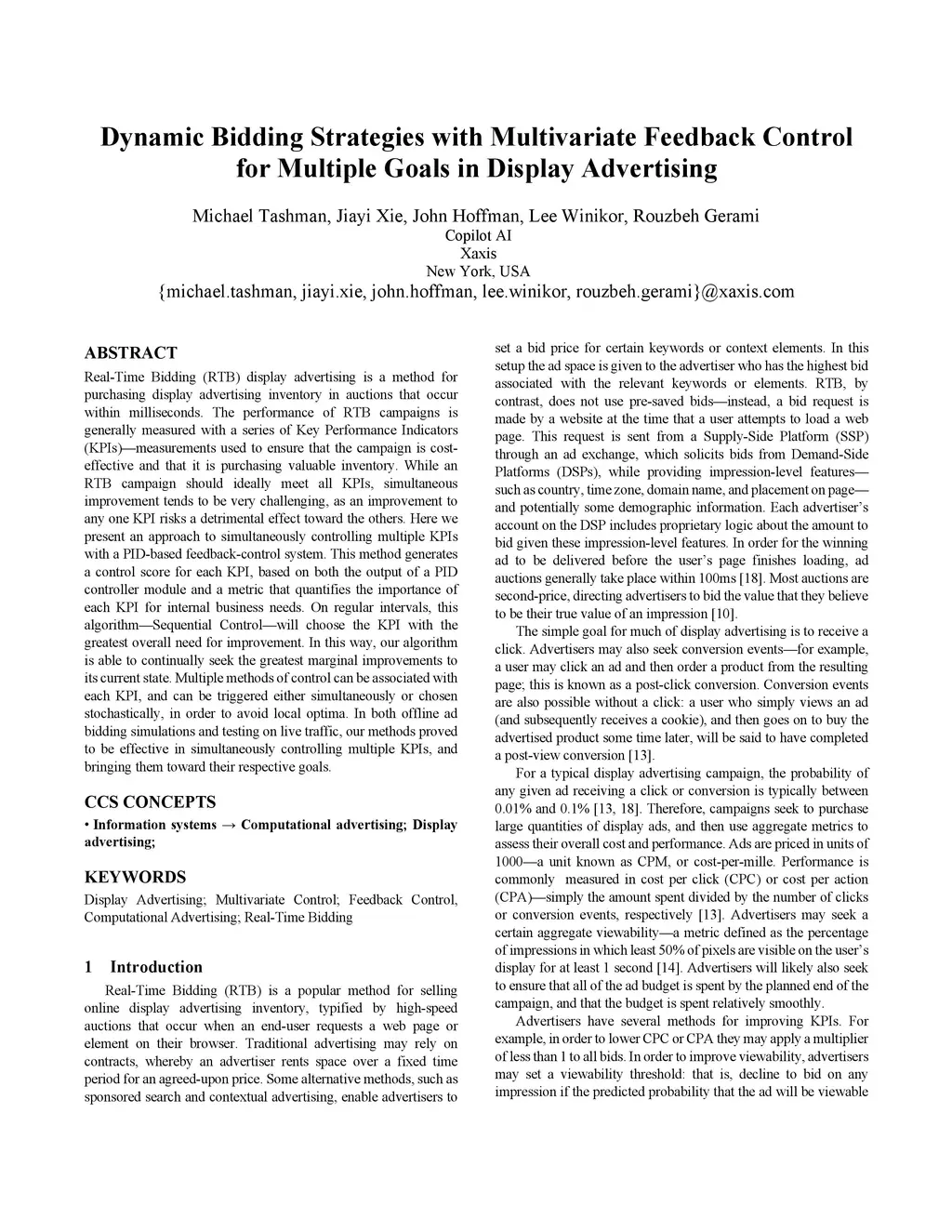 Dynamic Bidding Strategies with Multivariate Feedback Control for