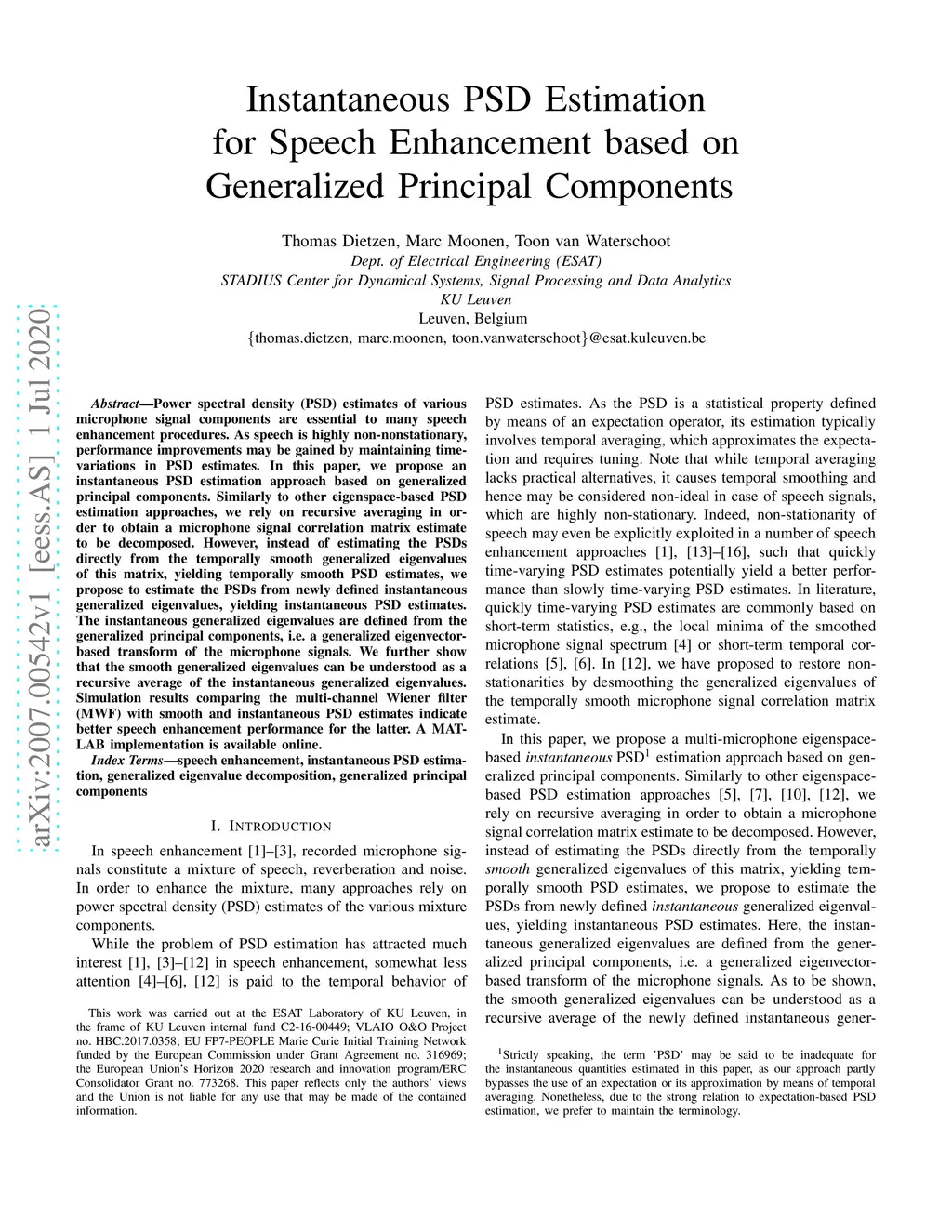 Instantaneous PSD Estimation for Speech Enhancement based on Generalized