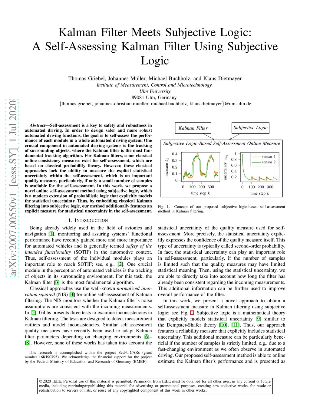 Kalman Filter Meets Subjective Logic: A Self-Assessing Kalman Filter