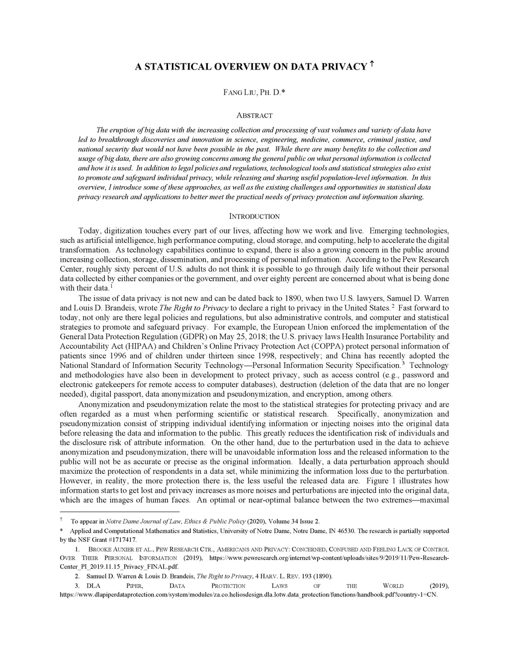 A Statistical Overview on Data Privacy