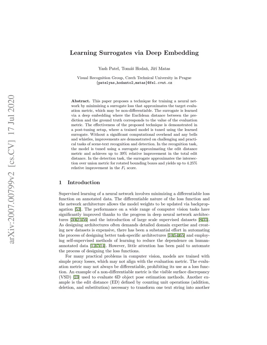 This paper proposes a technique for training a neural network by minimizing a surrogate loss that approximates the target evaluation metric, which may be non-differentiable. The surrogate is learned via a deep embedding where the Euclidean distance between the prediction and the ground truth corresponds to the value of the evaluation metric. The effectiveness of the proposed technique is demonstrated in a post-tuning setup, where a trained model is tuned using the learned surrogate. Without a significant computational overhead and any bells and whistles, improvements are demonstrated on challenging and practical tasks of scene-text recognition and detection. In the recognition task, the model is tuned using a surrogate approximating the edit distance metric and achieves up to relative improvement in the total edit distance. In the detection task, the surrogate approximates the intersection over union metric for rotated bounding boxes and yields up to relative improvement in the score.