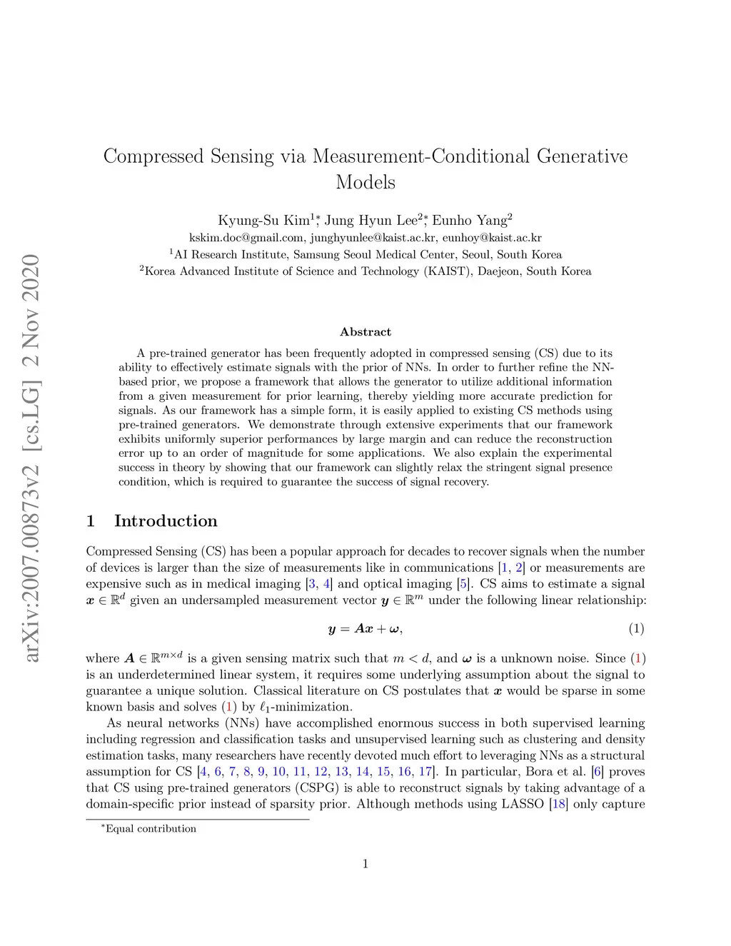A pre-trained generator has been frequently adopted in compressed sensing (CS) due to its ability to effectively estimate signals with the prior of NNs. In order to further refine the NN-based prior, we propose a framework that allows the generator to utilize additional information from a given measurement for prior learning, thereby yielding more accurate prediction for signals. As our framework has a simple form, it is easily applied to existing CS methods using pre-trained generators. We demonstrate through extensive experiments that our framework exhibits uniformly superior performances by large margin and can reduce the reconstruction error up to an order of magnitude for some applications. We also explain the experimental success in theory by showing that our framework can slightly relax the stringent signal presence condition, which is required to guarantee the success of signal recovery.