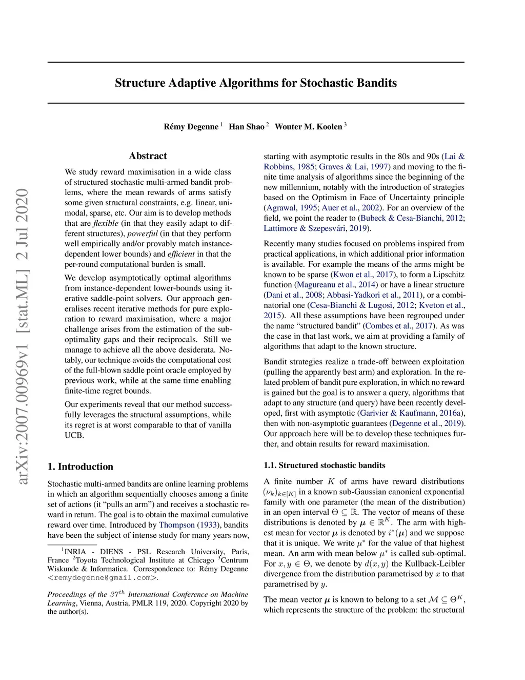 We study reward maximisation in a wide class of structured stochastic multi-armed bandit problems, where the mean rewards of arms satisfy some given structural constraints, e.g. linear, unimodal, sparse, etc. Our aim is to develop methods that are flexible (in that they easily adapt to different structures), powerful (in that they perform well empirically and/or provably match instance-dependent lower bounds) and efficient in that the per-round computational burden is small. We develop asymptotically optimal algorithms from instance-dependent lower-bounds using iterative saddle-point solvers. Our approach generalises recent iterative methods for pure exploration to reward maximisation, where a major challenge arises from the estimation of the sub-optimality gaps and their reciprocals. Still we manage to achieve all the above desiderata. Notably, our technique avoids the computational cost of the full-blown saddle point oracle employed by previous work, while at the same time enabling finite-time regret bounds. Our experiments reveal that our method successfully leverages the structural assumptions, while its regret is at worst comparable to that of vanilla UCB.