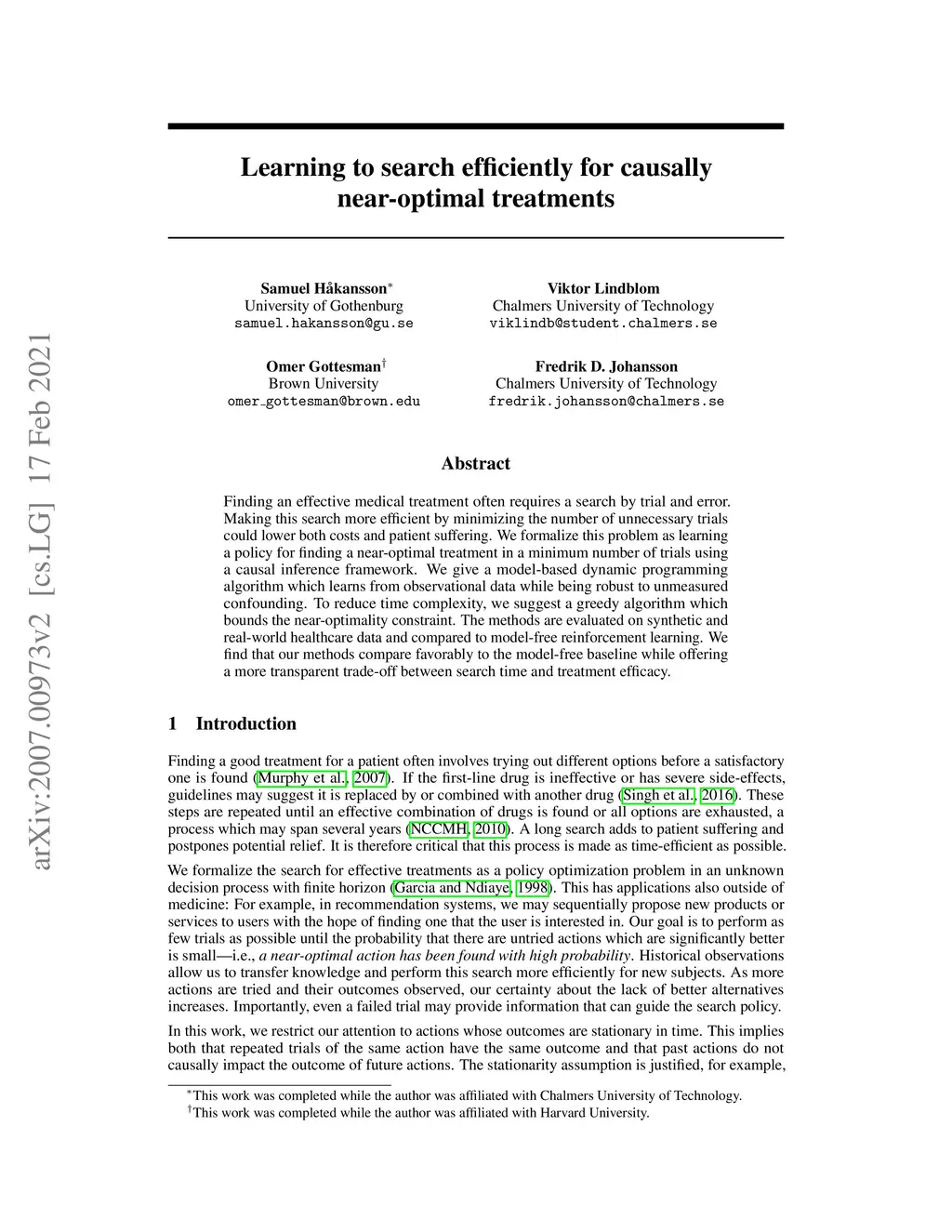 Learning to search efficiently for causally near-optimal treatments