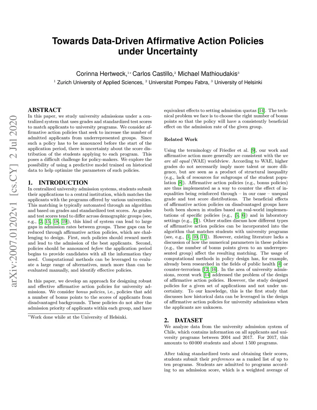 Towards Data-Driven Affirmative Action Policies under Uncertainty