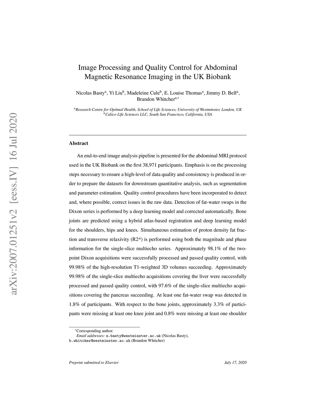 Image Processing and Quality Control for Abdominal Magnetic Resonance