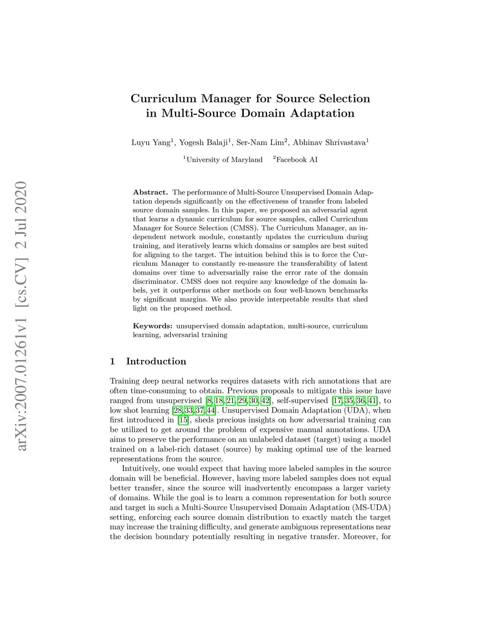 Curriculum Manager for Source Selection in Multi-Source Domain