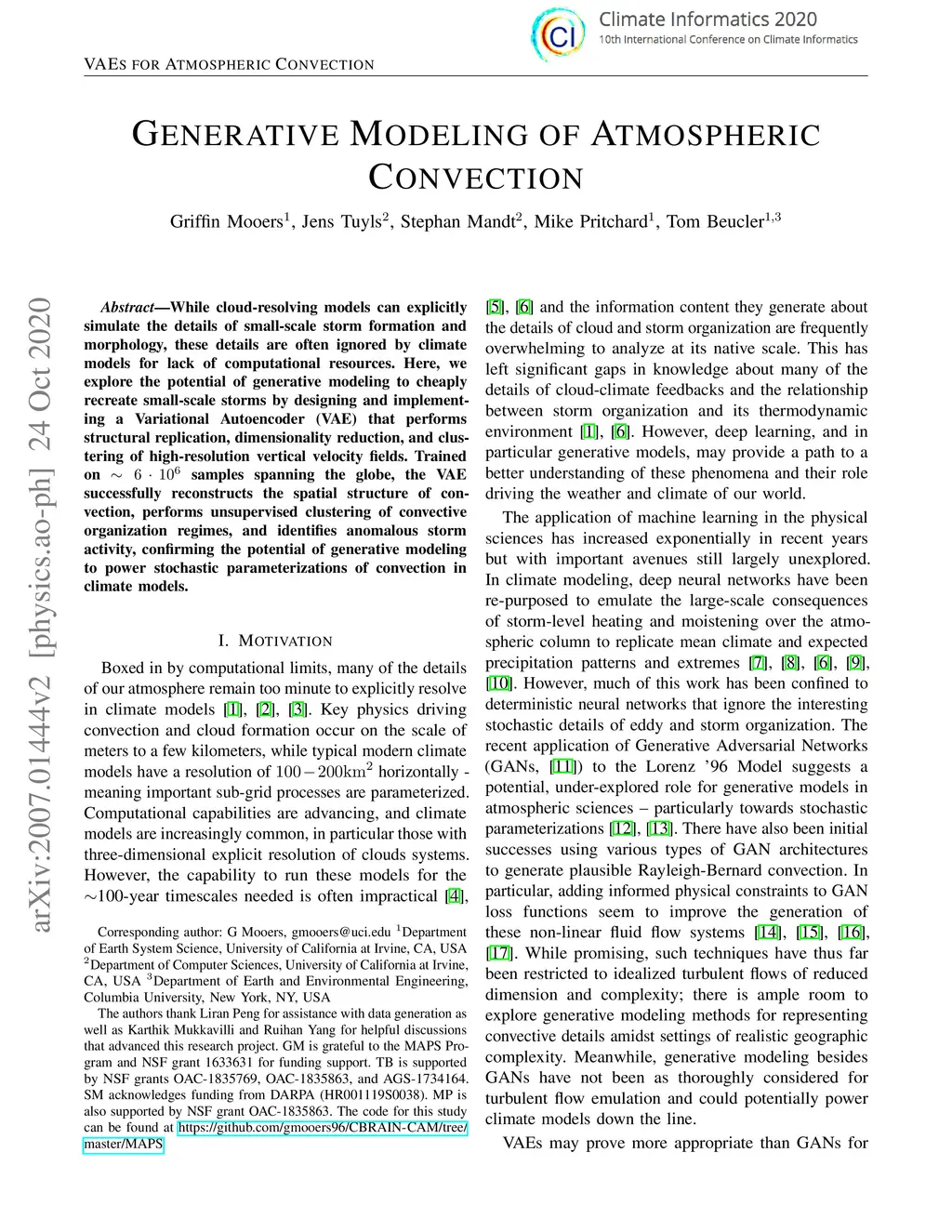 Generative Modeling for Atmospheric Convection