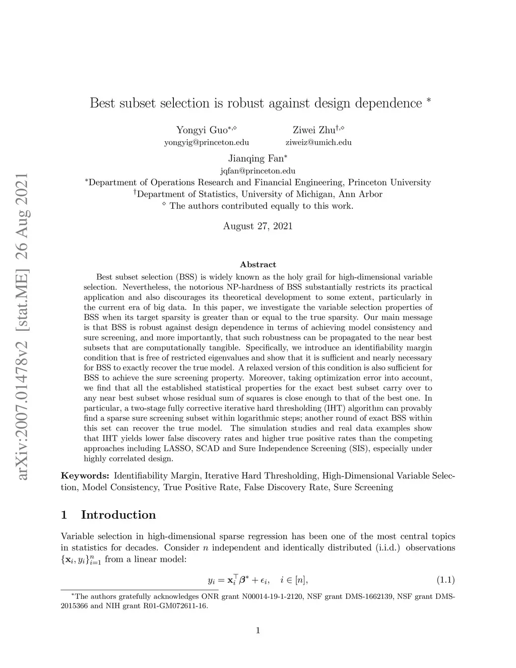 Best subset selection (BSS) is widely known as the holy grail for high-dimensional variable selection. Nevertheless, the notorious NP-hardness of BSS substantially restricts its practical application and also discourages its theoretical development to some extent, particularly in the current era of big data. In this paper, we investigate the variable selection properties of BSS when its target sparsity is greater than or equal to the true sparsity. Our main message is that BSS is robust against design dependence in terms of achieving model consistency and sure screening, and more importantly, that such robustness can be propagated to the near best subsets that are computationally tangible. Specifically, we introduce an identifiability margin condition that is free of restricted eigenvalues and show that it is sufficient and nearly necessary for BSS to exactly recover the true model. A relaxed version of this condition is also sufficient for BSS to achieve the sure screening property. Moreover, taking optimization error into account, we find that all the established statistical properties for the exact best subset carry over to any near best subset whose residual sum of squares is close enough to that of the best one. In particular, a two-stage fully corrective iterative hard thresholding (IHT) algorithm can provably find a sparse sure screening subset within logarithmic steps; another round of exact BSS within this set can recover the true model. The simulation studies and real data examples show that IHT yields lower false discovery rates and higher true positive rates than the competing approaches including LASSO, SCAD and Sure Independence Screening (SIS), especially under highly correlated design.