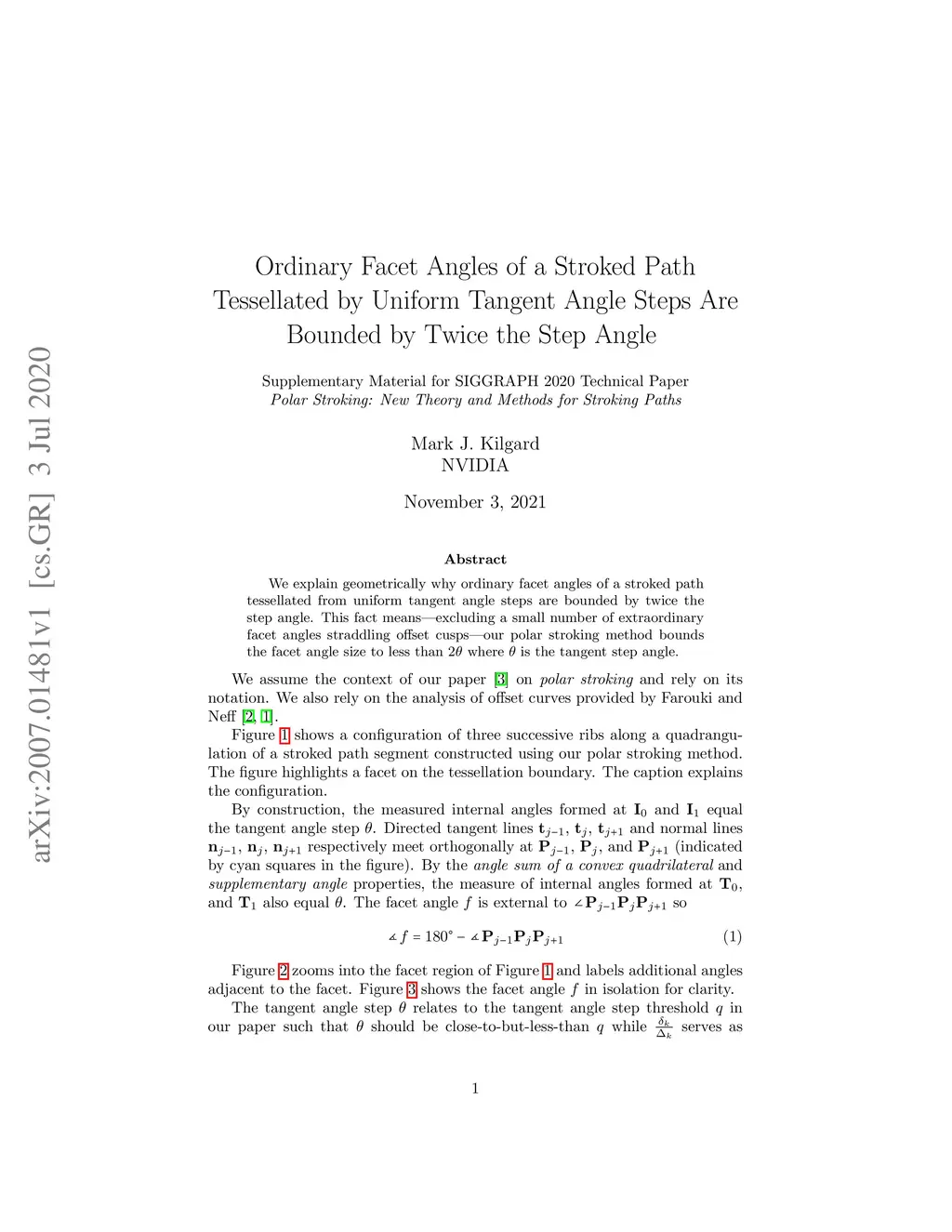We explain geometrically why ordinary facet angles of a stroked path tessellated from uniform tangent angle steps are bounded by twice the step angle. This fact means---excluding a small number of extraordinary facet angles straddling offset cusps---our polar stroking method bounds the facet angle size to less than where is the tangent step angle.