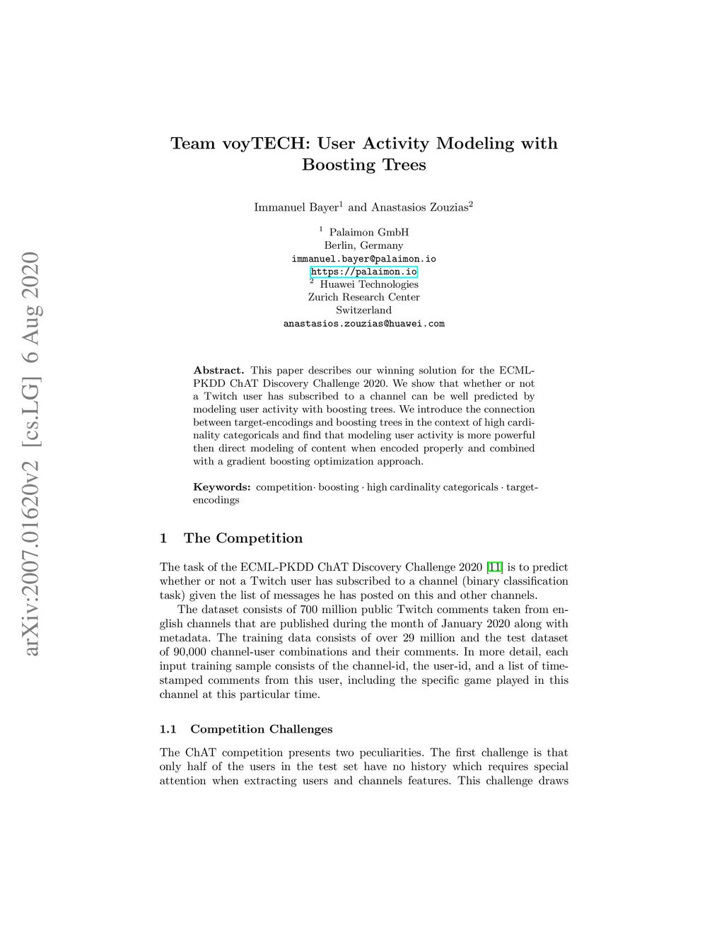 Team voyTECH: User Activity Modeling with Boosting Trees