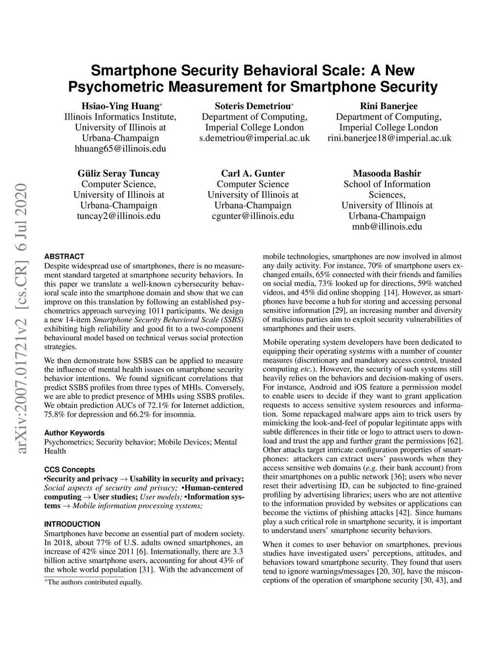 Smartphone Security Behavioral Scale: A New Psychometric Measurement for