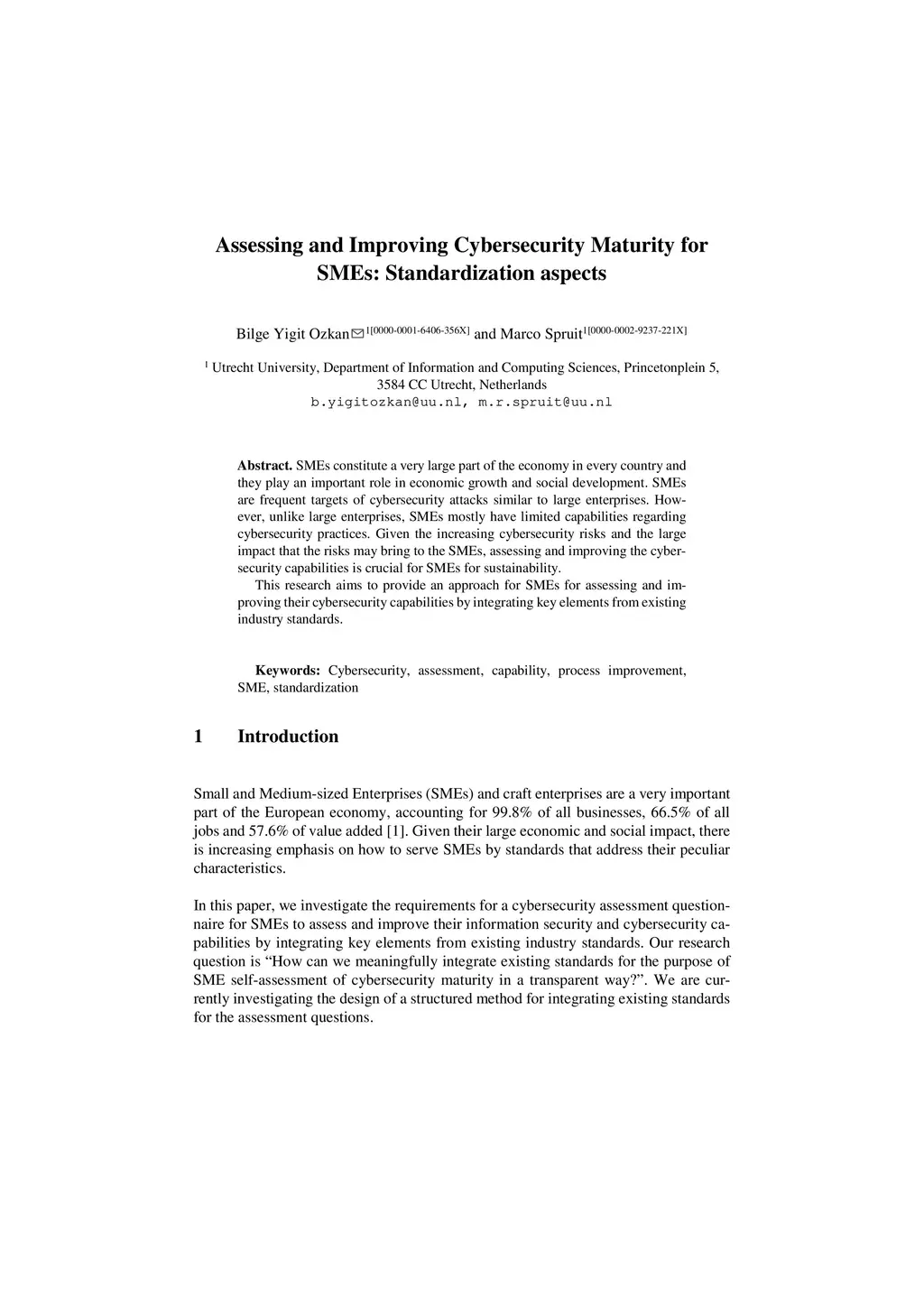 Assessing and Improving Cybersecurity Maturity for SMEs: Standardization