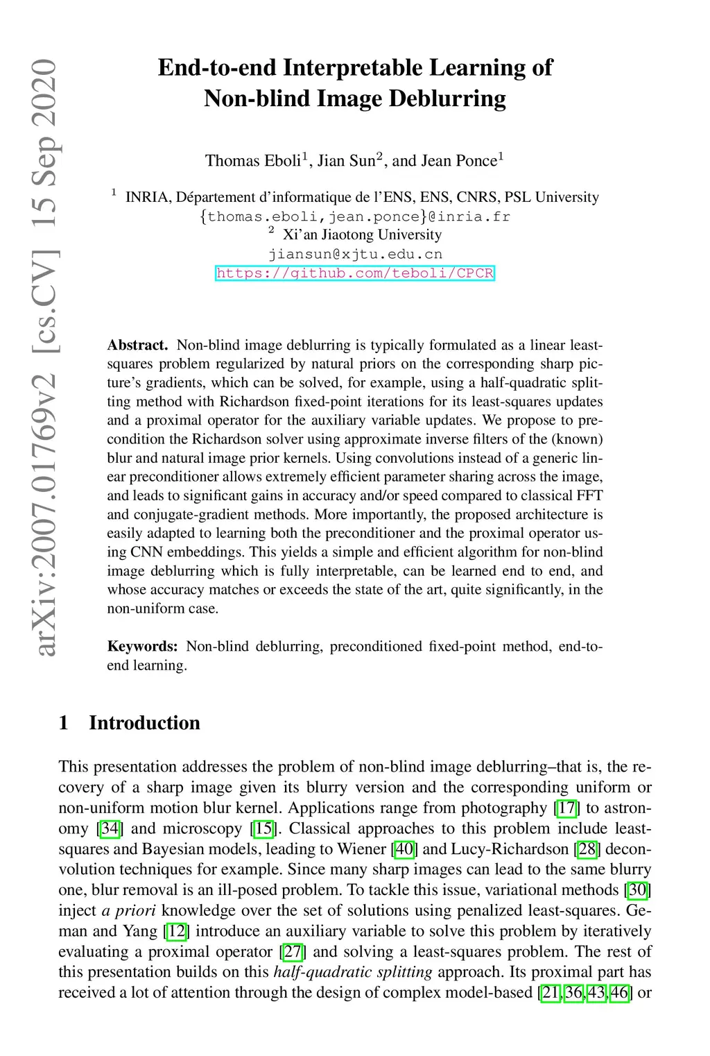 End-to-end Interpretable Learning of Non-blind Image Deblurring