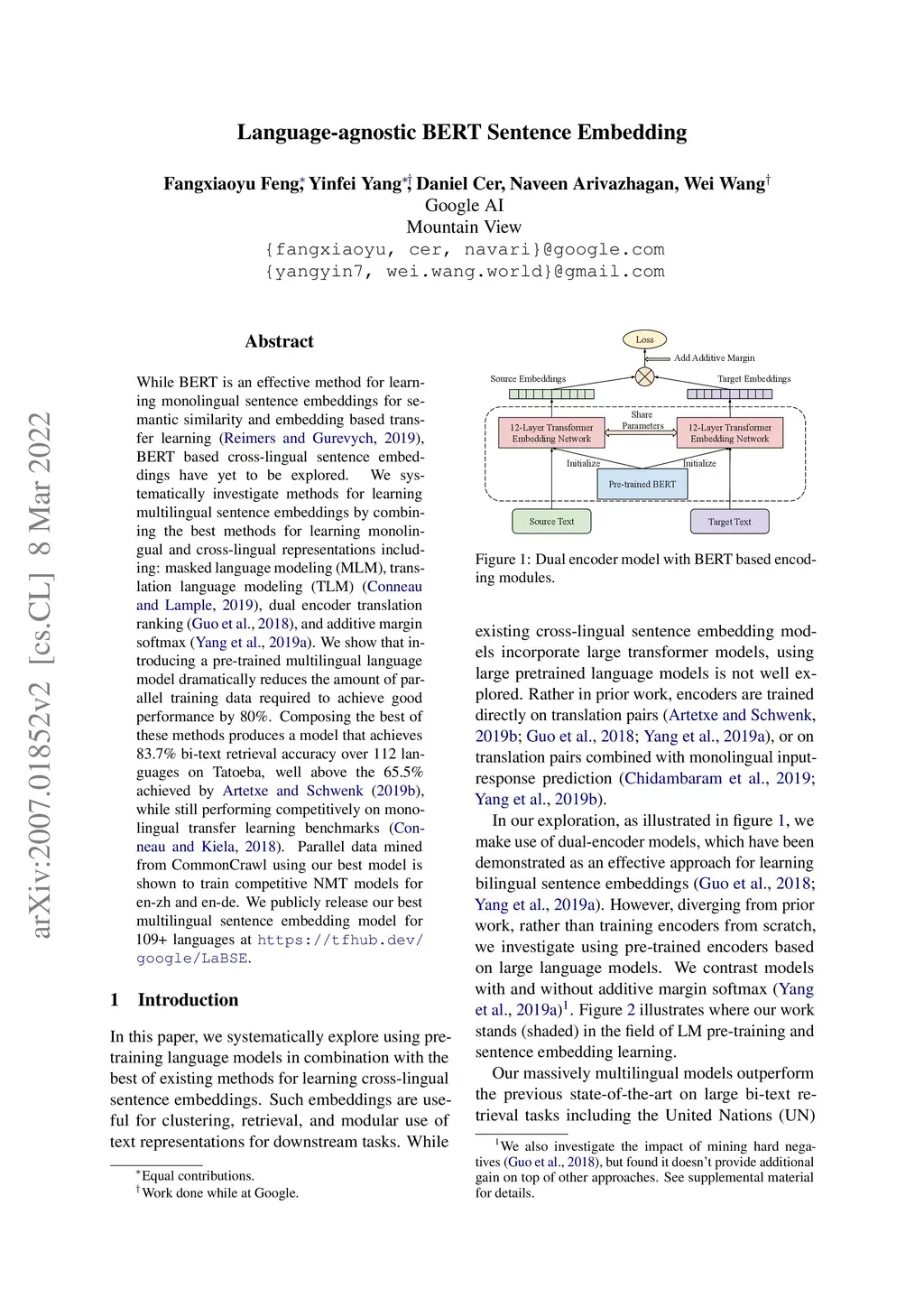 Language-agnostic BERT Sentence Embedding