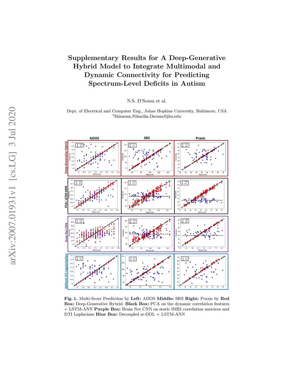 We propose an integrated deep-generative framework, that jointly models complementary information from resting-state functional MRI (rs-fMRI) connectivity and diffusion tensor imaging (DTI) tractography to extract predictive biomarkers of a disease. The generative part of our framework is a structurally-regularized Dynamic Dictionary Learning (sr-DDL) model that decomposes the dynamic rs-fMRI correlation matrices into a collection of shared basis networks and time varying patient-specific loadings. This matrix factorization is guided by the DTI tractography matrices to learn anatomically informed connectivity profiles. The deep part of our framework is an LSTM-ANN block, which models the temporal evolution of the patient sr-DDL loadings to predict multidimensional clinical severity. Our coupled optimization procedure collectively estimates the basis networks, the patient-specific dynamic loadings, and the neural network weights. We validate our framework on a multi-score prediction task in 57 patients diagnosed with Autism Spectrum Disorder (ASD). Our hybrid model outperforms state-of-the-art baselines in a five-fold cross validated setting and extracts interpretable multimodal neural signatures of brain dysfunction in ASD.