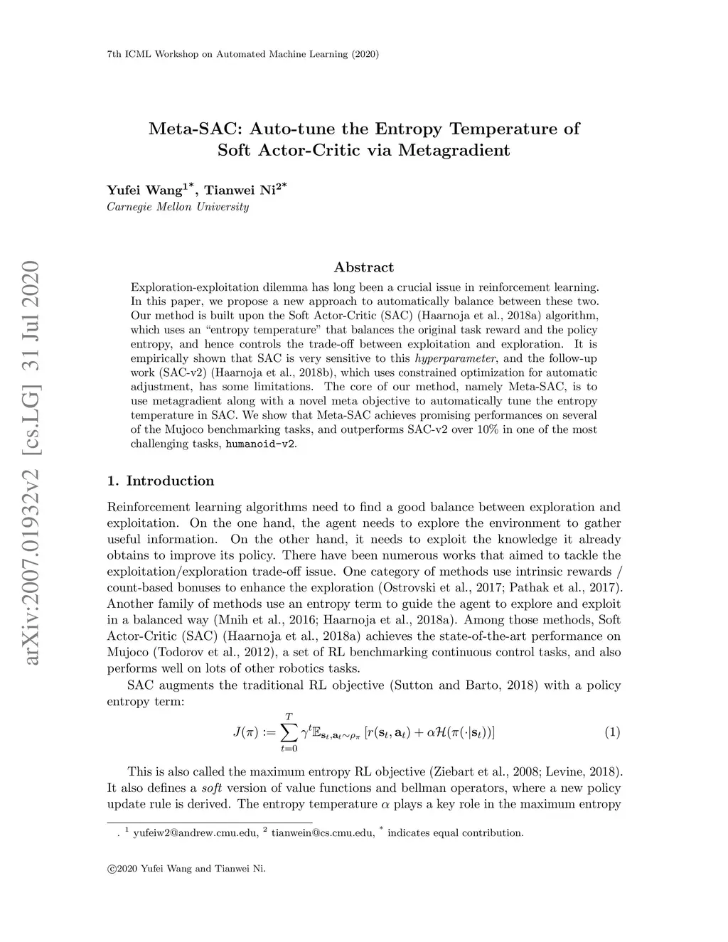 Meta-SAC: Auto-tune the Entropy Temperature of Soft Actor-Critic via