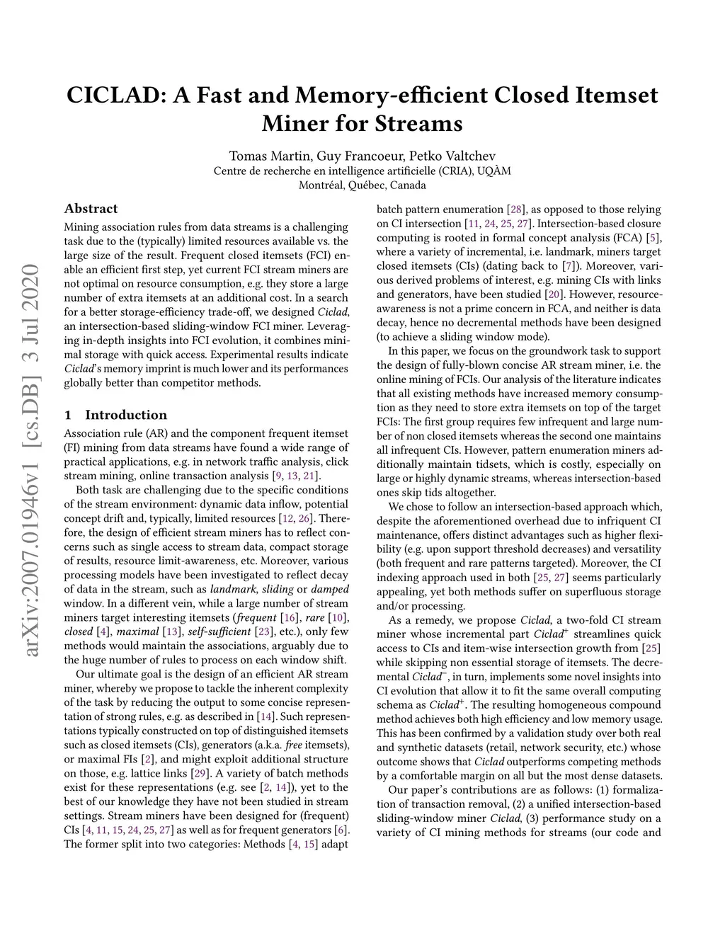 CICLAD: A Fast and Memory-efficient Closed Itemset Miner for Streams