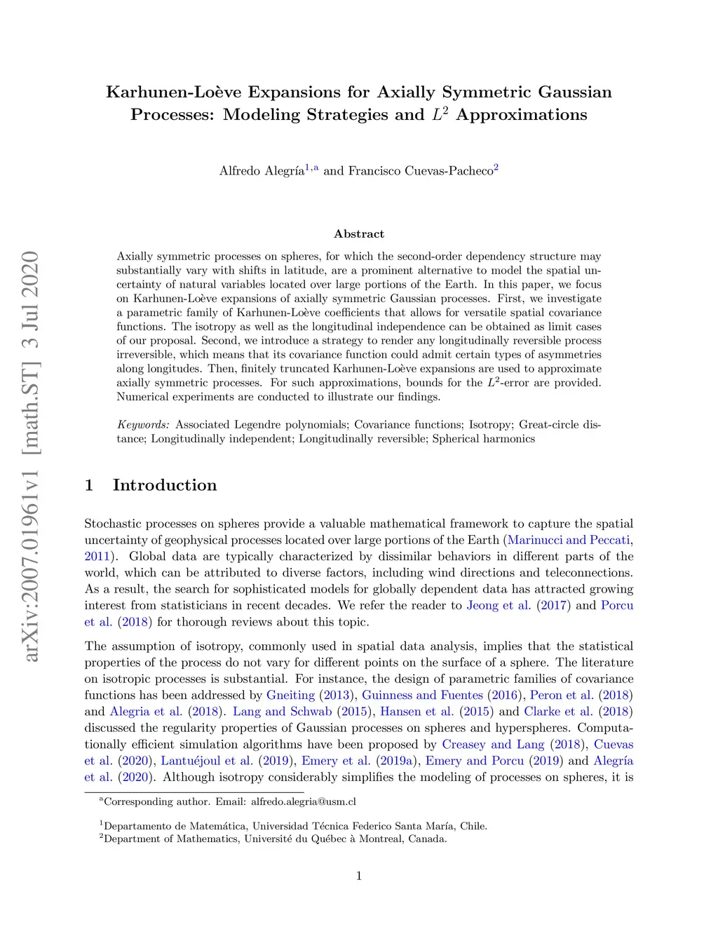 Axially symmetric processes on spheres, for which the second-order dependency structure may substantially vary with shifts in latitude, are a prominent alternative to model the spatial uncertainty of natural variables located over large portions of the Earth. In this paper, we focus on Karhunen-Lo\`eve expansions of axially symmetric Gaussian processes. First, we investigate a parametric family of Karhunen-Lo\`eve coefficients that allows for versatile spatial covariance functions. The isotropy as well as the longitudinal independence can be obtained as limit cases of our proposal. Second, we introduce a strategy to render any longitudinally reversible process irreversible, which means that its covariance function could admit certain types of asymmetries along longitudes. Then, finitely truncated Karhunen-Lo\`eve expansions are used to approximate axially symmetric processes. For such approximations, bounds for the -error are provided. Numerical experiments are conducted to illustrate our findings.