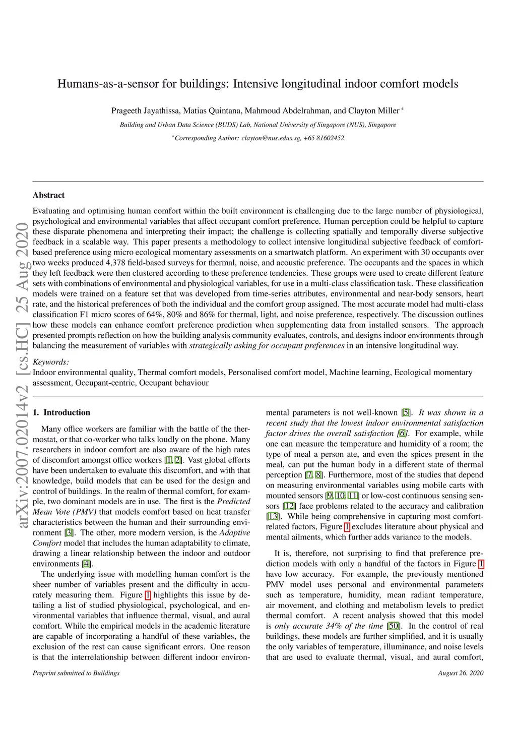 Humans-as-a-sensor for buildings: Intensive longitudinal indoor comfort