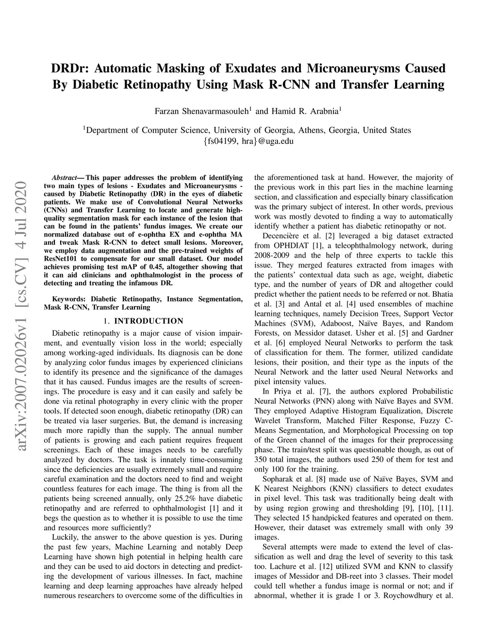Diabetic Retinopathy Using Mask R-CNN and Transfer Learning