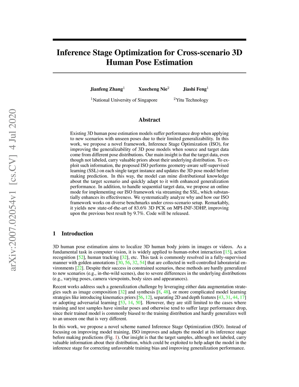 Inference Stage Optimization for Cross-scenario 3D Human Pose Estimation