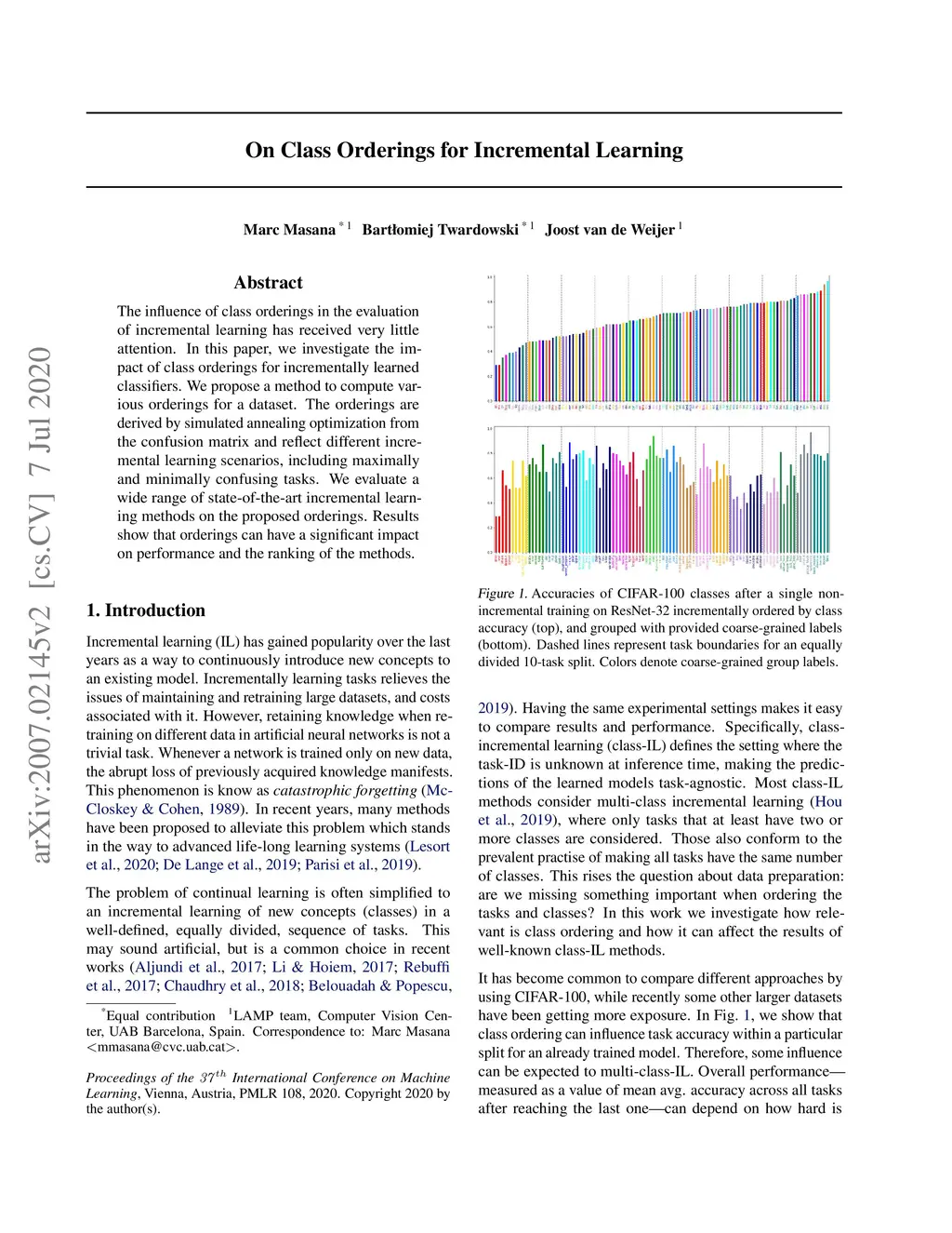 The influence of class orderings in the evaluation of incremental learning has received very little attention. In this paper, we investigate the impact of class orderings for incrementally learned classifiers. We propose a method to compute various orderings for a dataset. The orderings are derived by simulated annealing optimization from the confusion matrix and reflect different incremental learning scenarios, including maximally and minimally confusing tasks. We evaluate a wide range of state-of-the-art incremental learning methods on the proposed orderings. Results show that orderings can have a significant impact on performance and the ranking of the methods.