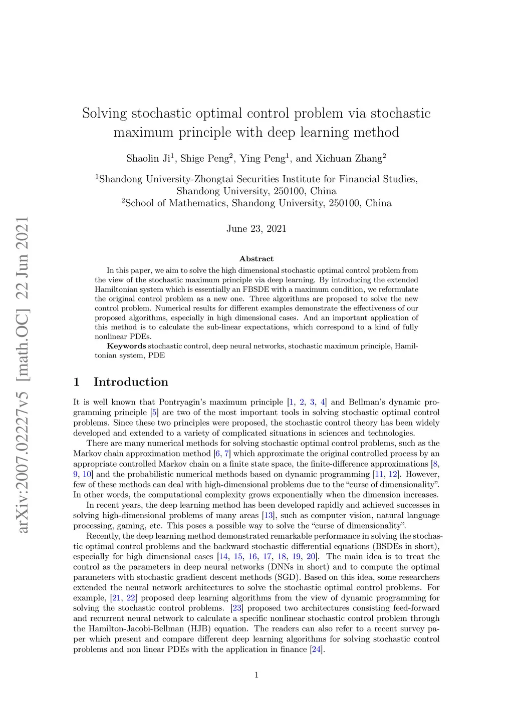 Solving stochastic optimal control problem via stochastic maximum