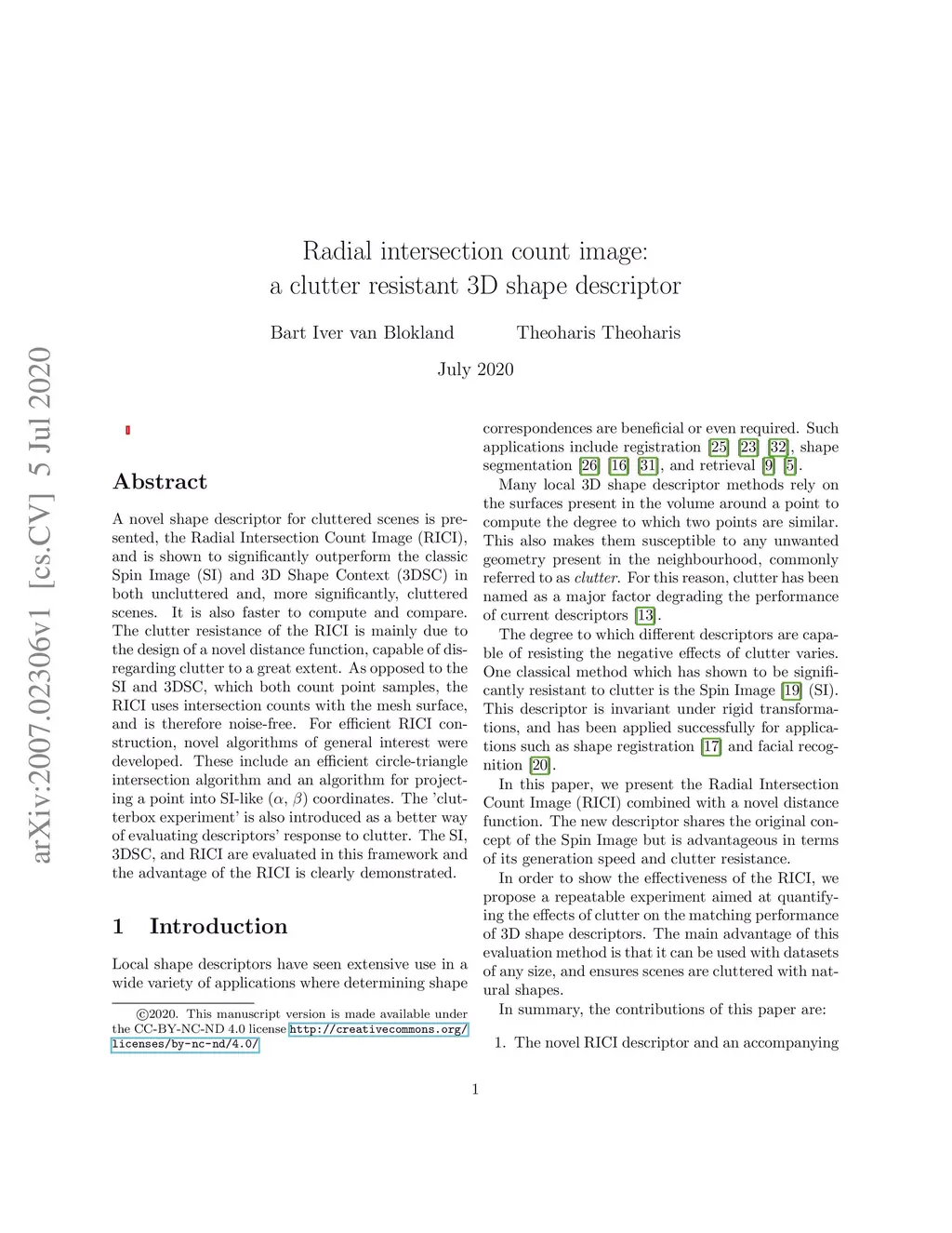 Radial Intersection Count Image: a Clutter Resistant 3D Shape Descriptor