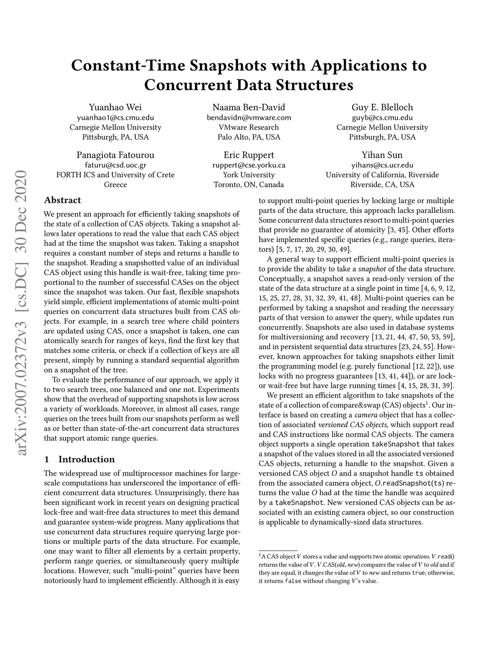 Constant-Time Lazy Snapshots Supporting General Queries on Concurrent