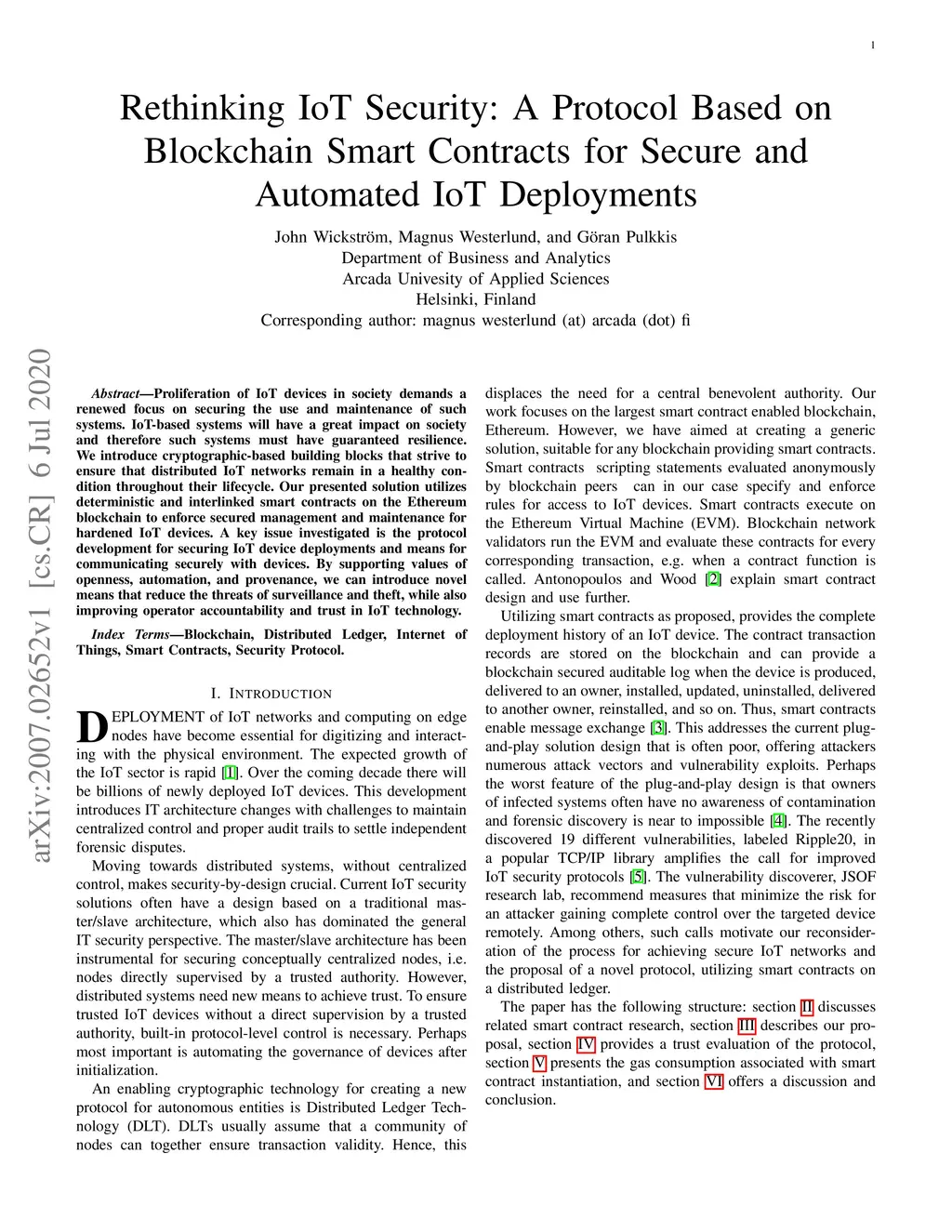 Rethinking IoT Security: A Protocol Based on Blockchain Smart Contracts