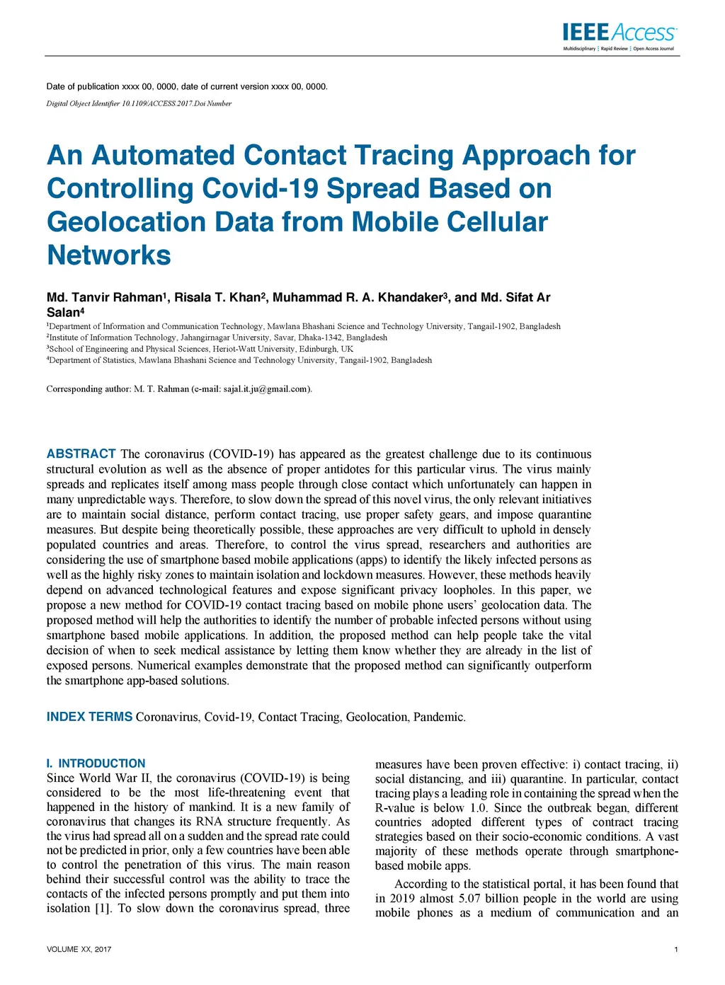 An Automated Contact Tracing Approach for Controlling Covid-19 Spread