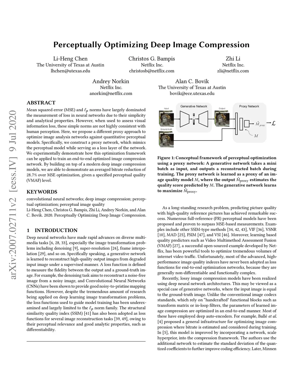 Mean squared error (MSE) and norms have largely dominated the measurement of loss in neural networks due to their simplicity and analytical properties. However, when used to assess visual information loss, these simple norms are not highly consistent with human perception. Here, we propose a different proxy approach to optimize image analysis networks against quantitative perceptual models. Specifically, we construct a proxy network, which mimics the perceptual model while serving as a loss layer of the network.We experimentally demonstrate how this optimization framework can be applied to train an end-to-end optimized image compression network. By building on top of a modern deep image compression models, we are able to demonstrate an averaged bitrate reduction of over MSE optimization, given a specified perceptual quality (VMAF) level.