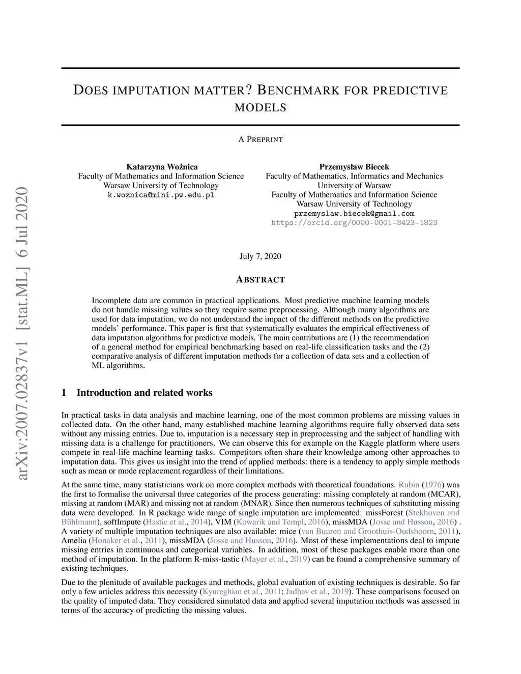 Does imputation matter? Benchmark for predictive models