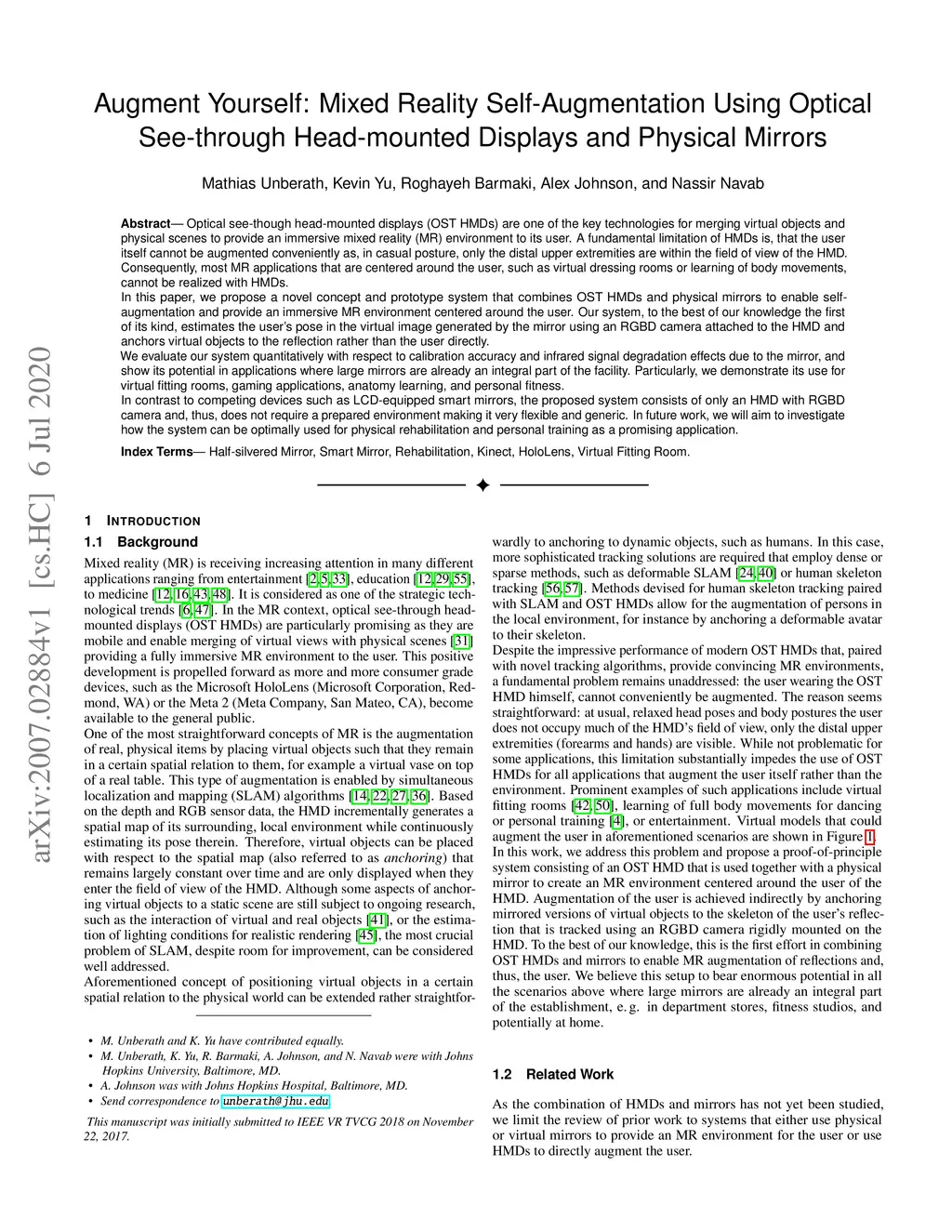 Augment Yourself: Mixed Reality Self-Augmentation Using Optical