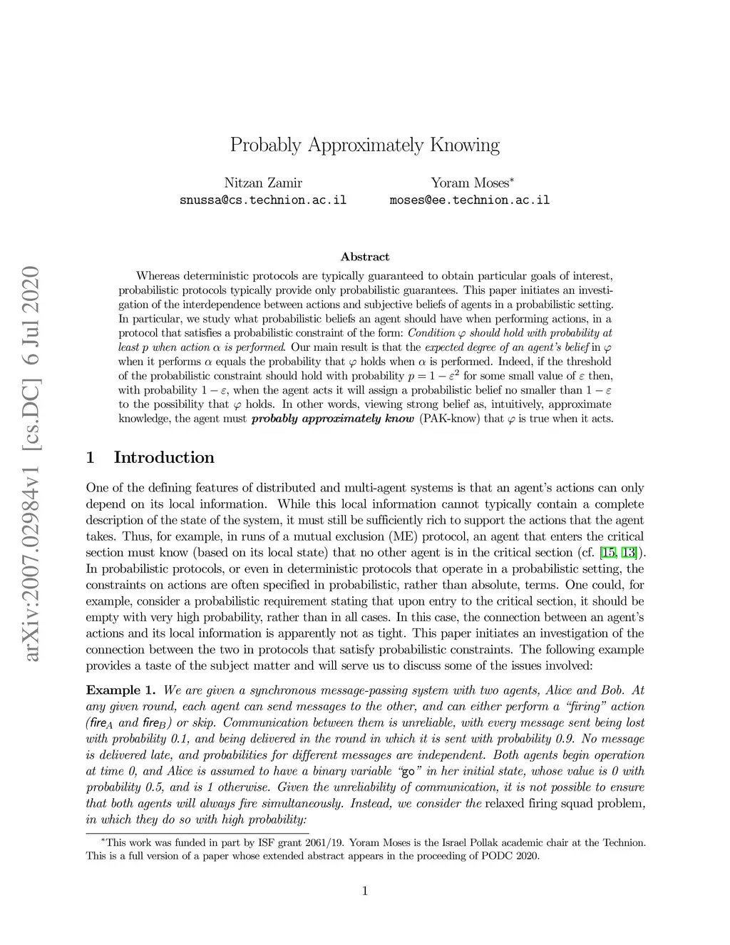 Whereas deterministic protocols are typically guaranteed to obtain particular goals of interest, probabilistic protocols typically provide only probabilistic guarantees. This paper initiates an investigation of the interdependence between actions and subjective beliefs of agents in a probabilistic setting. In particular, we study what probabilistic beliefs an agent should have when performing actions, in a protocol that satisfies a probabilistic constraint of the form: 'Condition C should hold with probability at least p when action a is performed'. Our main result is that the expected degree of an agent's belief in C when it performs a equals the probability that C holds when a is performed. Indeed, if the threshold of the probabilistic constraint should hold with probaility p=1-x^2 for some small value of x then, with probability 1-x, when the agent acts it will assign a probabilistic belief no smaller than 1-x to the possibility that C holds. In other words, viewing strong belief as, intuitively, approximate knowledge, the agent must probably approximately know (PAK-know) that C is true when it acts.