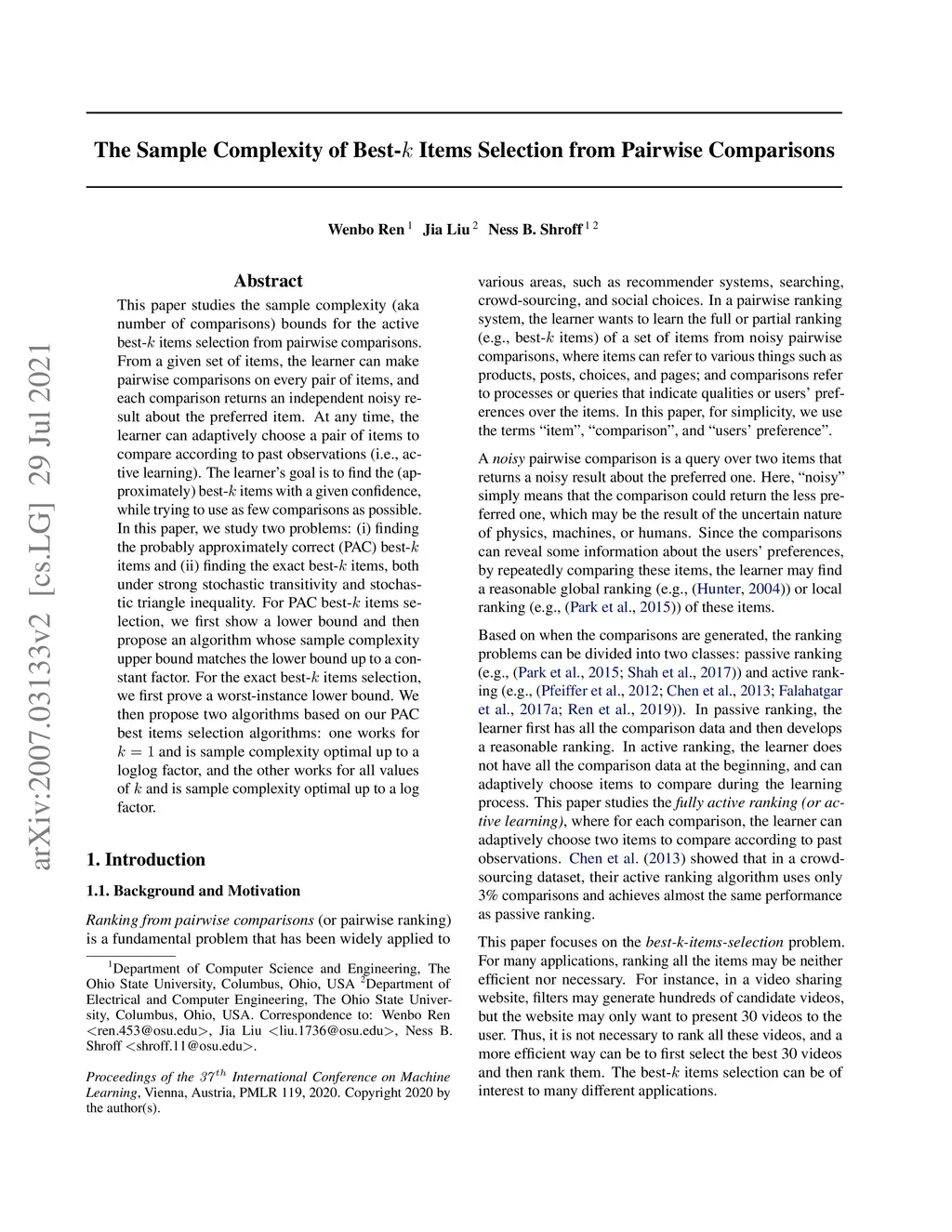 The Sample Complexity of Best- Items Selection from Pairwise