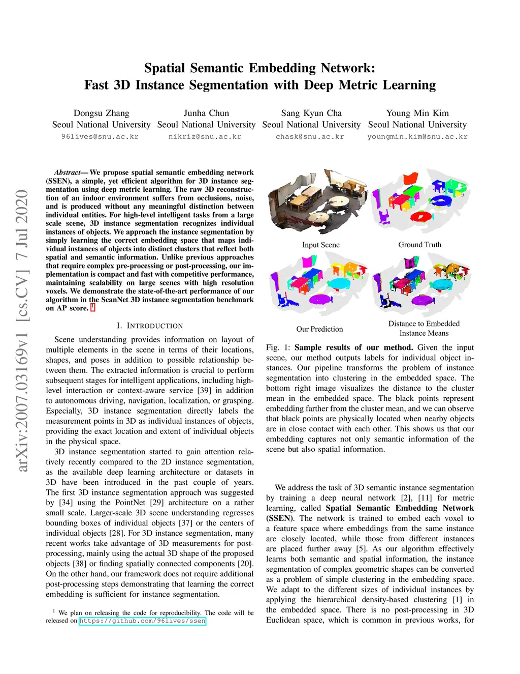 Spatial Semantic Embedding Network: Fast 3D Instance Segmentation with
