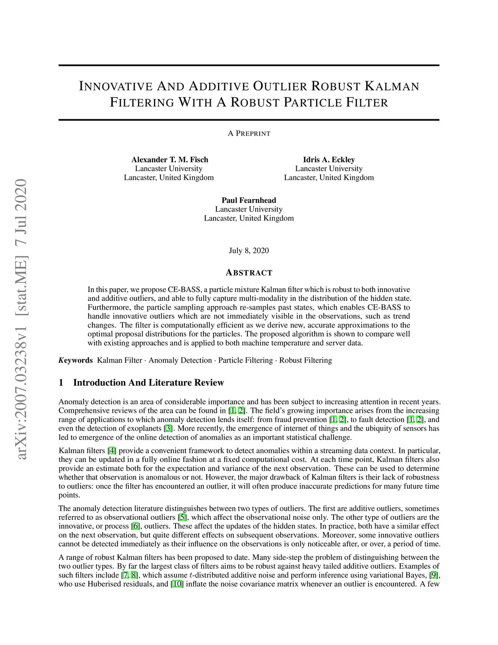 In this paper, we propose CE-BASS, a particle mixture Kalman filter which is robust to both innovative and additive outliers, and able to fully capture multi-modality in the distribution of the hidden state. Furthermore, the particle sampling approach re-samples past states, which enables CE-BASS to handle innovative outliers which are not immediately visible in the observations, such as trend changes. The filter is computationally efficient as we derive new, accurate approximations to the optimal proposal distributions for the particles. The proposed algorithm is shown to compare well with existing approaches and is applied to both machine temperature and server data.