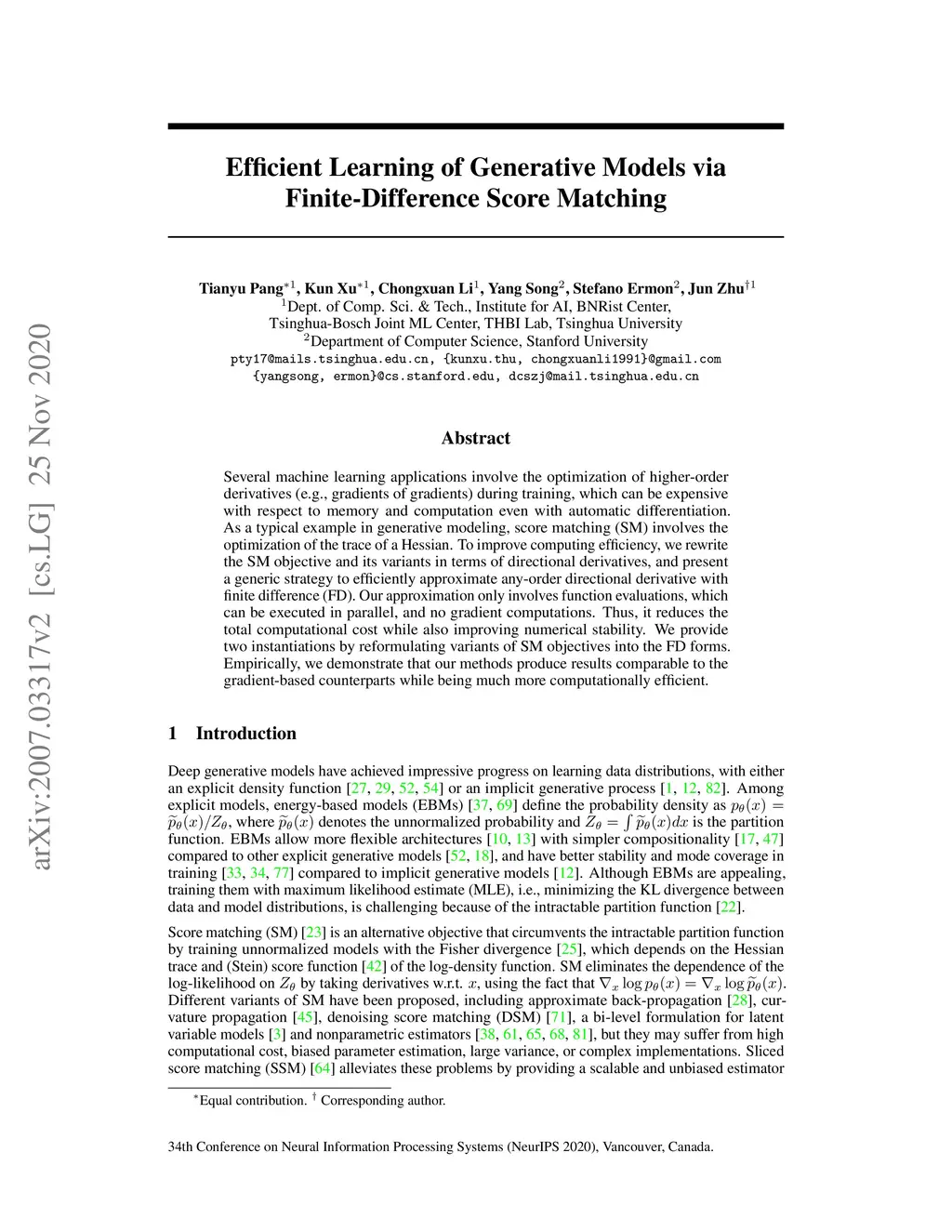 Efficient Learning of Generative Models via Finite-Difference Score