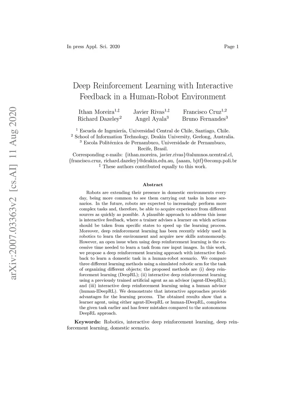 Deep Reinforcement Learning with Interactive Feedback in a Human-Robot
