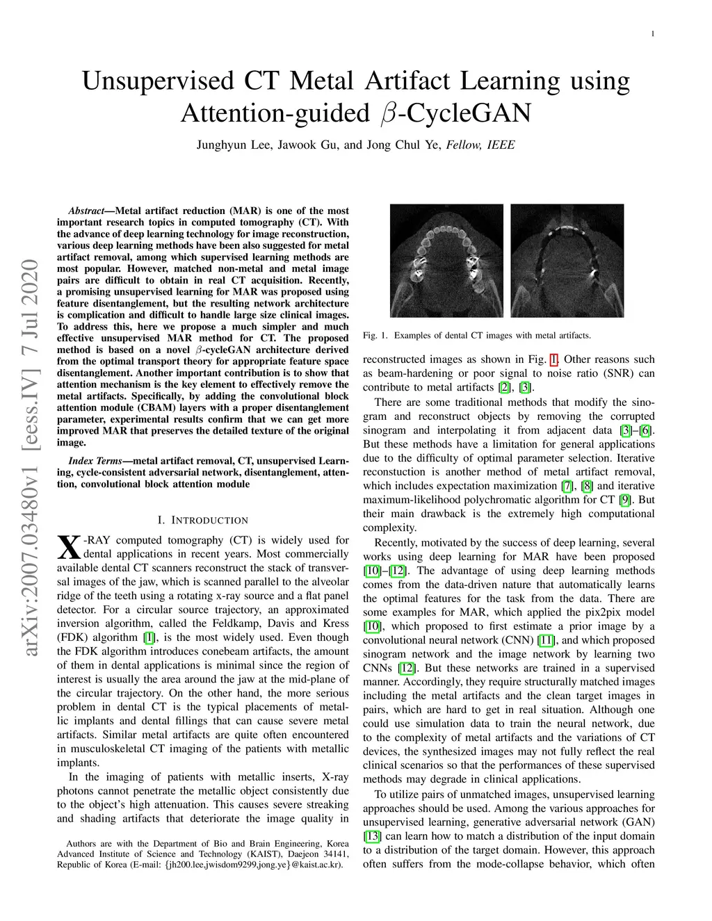 Metal artifact reduction (MAR) is one of the most important research topics in computed tomography (CT). With the advance of deep learning technology for image reconstruction,various deep learning methods have been also suggested for metal artifact removal, among which supervised learning methods are most popular. However, matched non-metal and metal image pairs are difficult to obtain in real CT acquisition. Recently, a promising unsupervised learning for MAR was proposed using feature disentanglement, but the resulting network architecture is complication and difficult to handle large size clinical images. To address this, here we propose a much simpler and much effective unsupervised MAR method for CT. The proposed method is based on a novel beta-cycleGAN architecture derived from the optimal transport theory for appropriate feature space disentanglement. Another important contribution is to show that attention mechanism is the key element to effectively remove the metal artifacts. Specifically, by adding the convolutional block attention module (CBAM) layers with a proper disentanglement parameter, experimental results confirm that we can get more improved MAR that preserves the detailed texture of the original image.