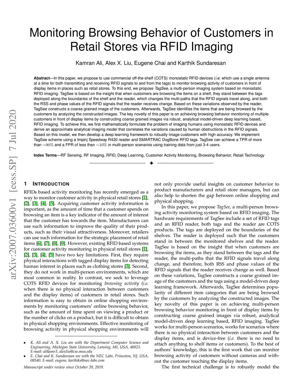 Monitoring Browsing Behavior of Customers in Retail Stores via RFID