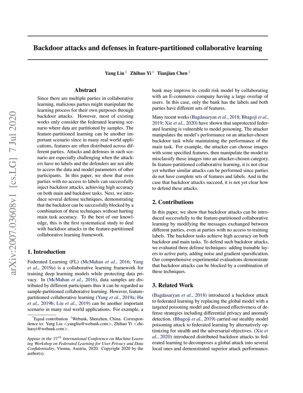 Backdoor attacks and defenses in feature-partitioned collaborative